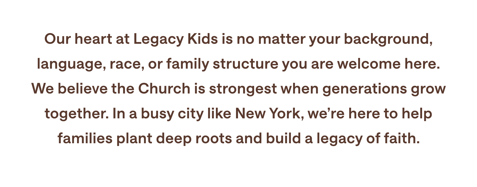 • Contact our Kids Director, Steph Rivas, directly at stephrivas@legacychurch.nyc